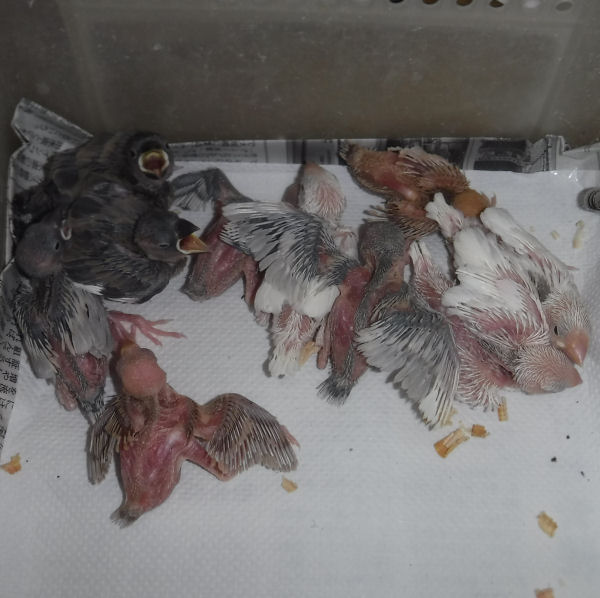 種々の要因(環境の変化、ストレス、保温不足)等で、特に小鳥類の雛は免疫力が低下して病原菌が急速に増殖して発病するケースも有る事を御承知下さい