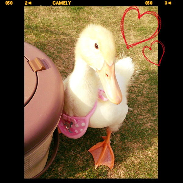 アヒルを飼っている事が珍しいらしく,公園に遊びに行くと注目されます(笑)